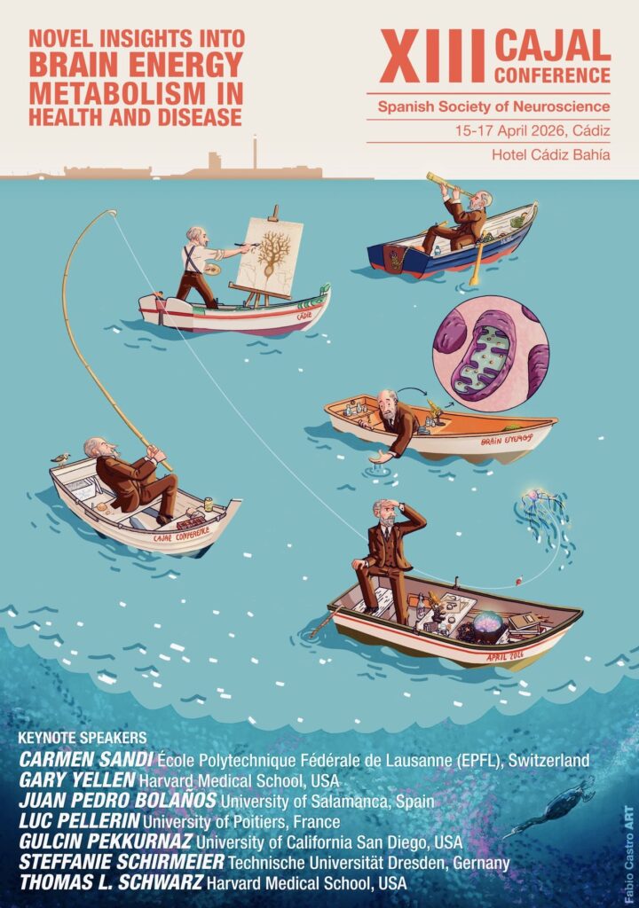 The XIII Cajal Conference will take place in April 15-17, 2026 in Hotel Cádiz Bahía. Cádiz (Spain) on novel insights into brain energy metabolism in health and disease