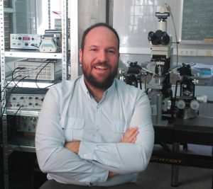 Ricardo Martín Herranz realizó su doctorado en el laboratorio del Dr. Sánchez-Prieto (UCM, 2010), caracterizando una nueva vía de señalización mediada por el receptor metabotrópico mGluR7 que potencia la liberación de glutamato por activación de proteínas Munc 13. A continuación, interesado en los mecanismos de modulación de dichas proteínas, realizó una estancia posdoctoral en el grupo del Dr. Brose (Instituto Max-Planck de Medicina Experimental, Göttingen, Alemania). Posteriormente, en el laboratorio del Dr. Araque (Instituto Cajal), descubrió la existencia de redes funcionales astro-neuronales constituidas por dos subpoblaciones de astrocitos que modulan específicamente la transmisión sináptica de las neuronas de los circuitos de la vía directa o indirecta de los ganglios basales, poniendo de manifiesto que la modulación de la transmisión sináptica mediada por astrocitos es un proceso exquisitamente regulado y restringido a sinapsis específicas. Actualmente, estudia el papel de mGluR7 en la plasticidad sináptica y sus alteraciones en el síndrome de X frágil.